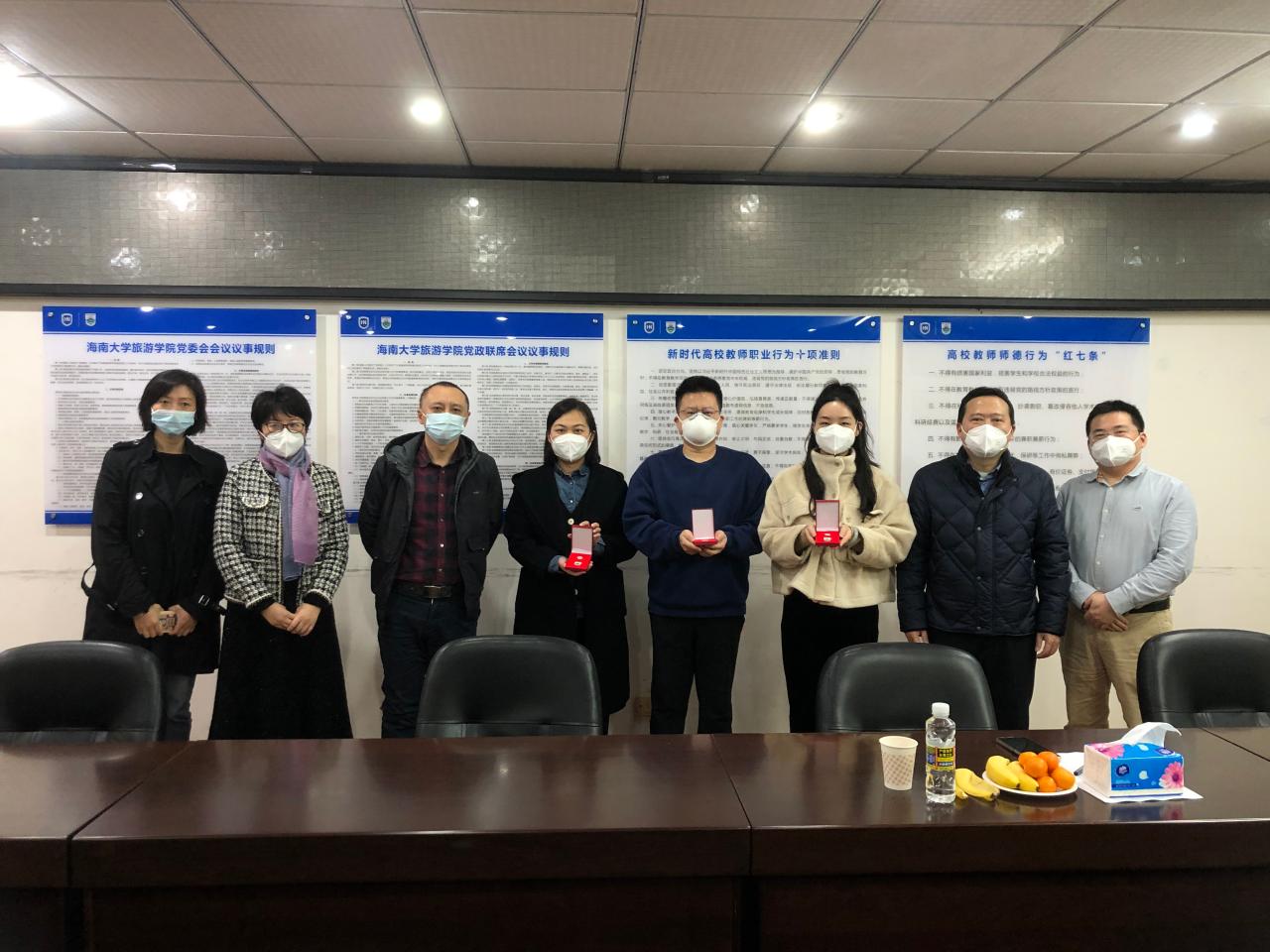茶话会最后公司领导为新进教职工们赠送了公司徽章及慰问礼品,并一同拍照留念。