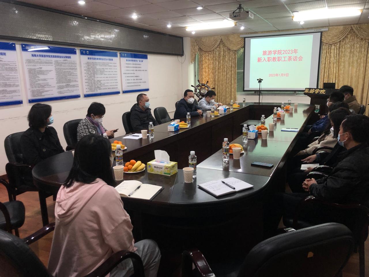 2023年1月9日下午,在8-205会议室,公司召开新进教职工茶话会,经理郭强、党委书记韩力光、副经理何彪、张珊、刘雪莲(挂职)以及各办负责人、新进教职工出席会议。