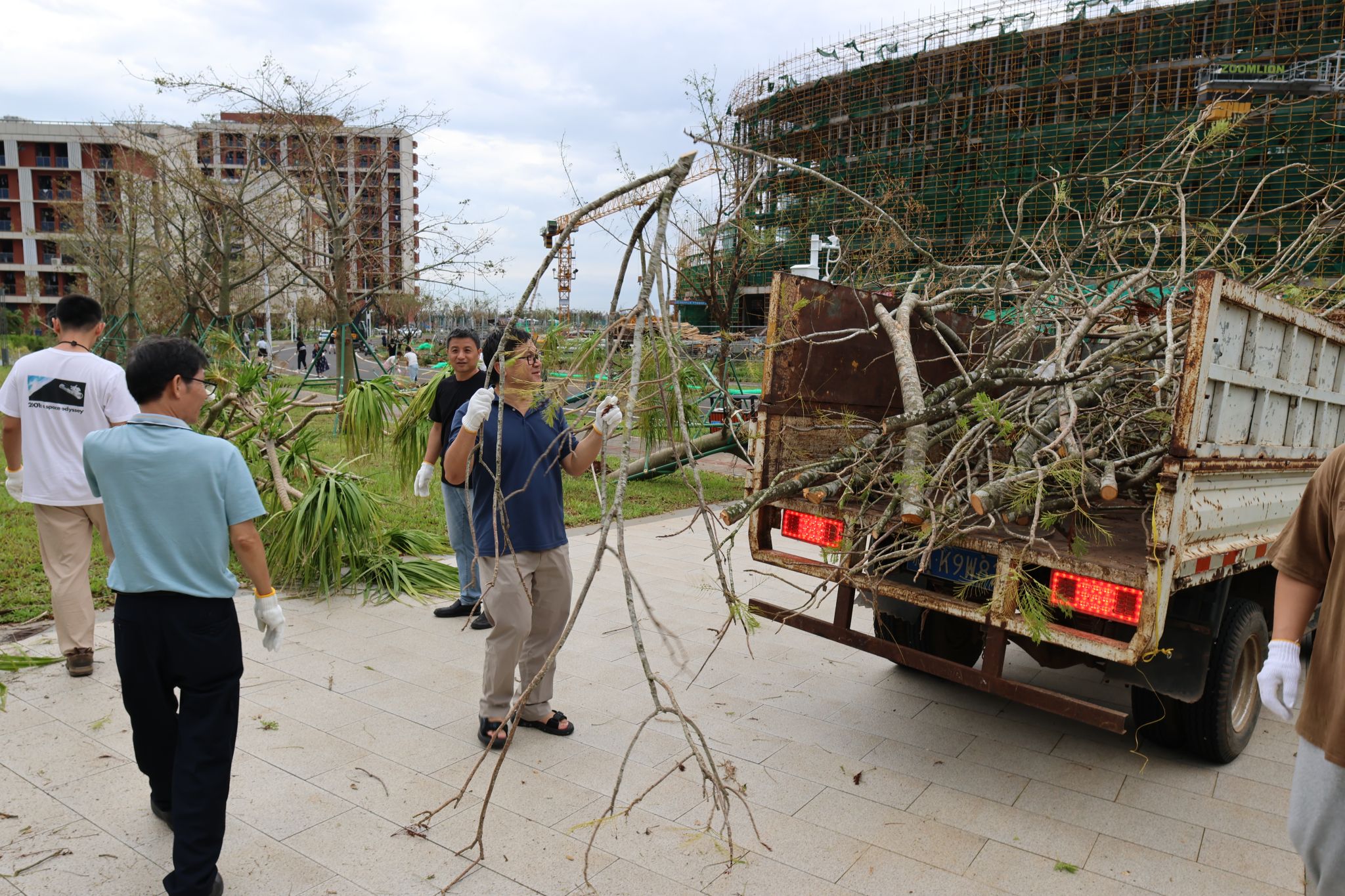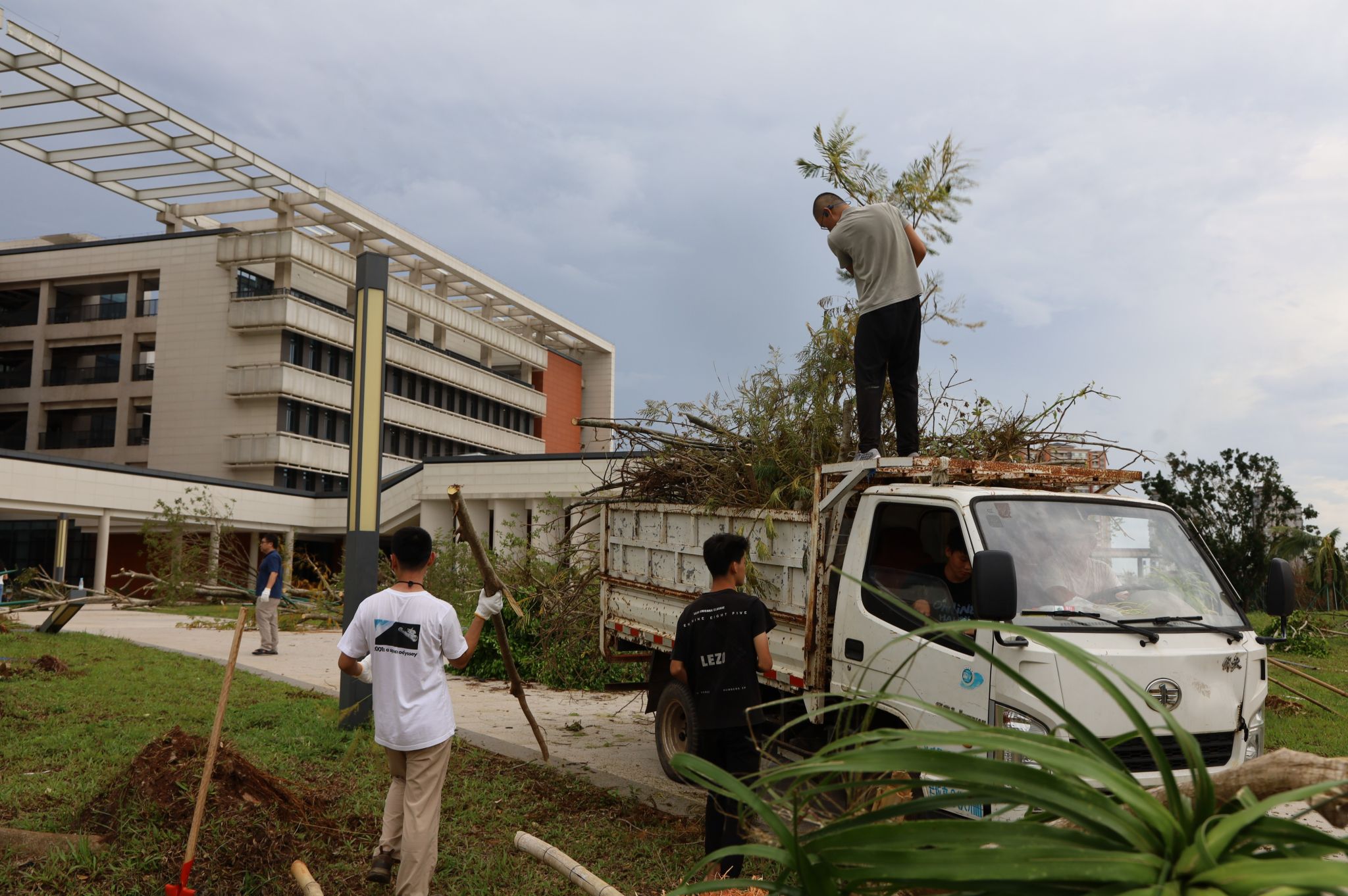 超强台风“摩羯”带给校园前所未有的“魔劫”,成片树木倒伏,杂物散落堆满道路,满目疮痍。公司党员教师迅速行动起来,与校区管委会、员工志愿者一起参与到灾后恢复重建的攻坚战中。大家众志成城,齐心协力,老师们有的砍断残枝、搬移倒树,有的清理路障、复原路面。经过数小时奋战,老师们各个汗水湿透了衣服,有的手上还磨出了水泡。台风摧毁了校园美景,却摧不垮顽强奋进的海大人,他们用行动诠释了什么是责任、什么是担当,展现了新时代党员教师的青春风采。