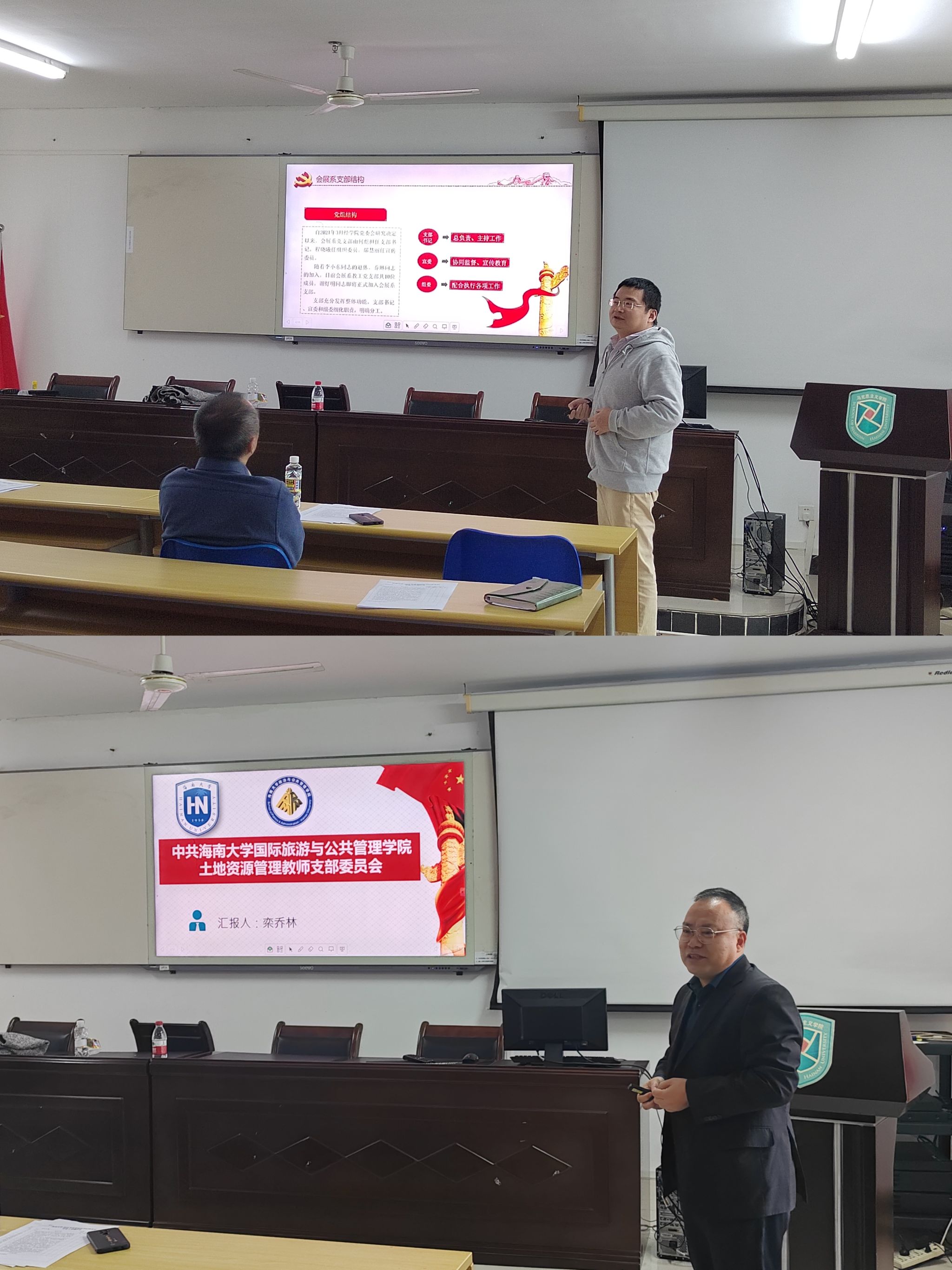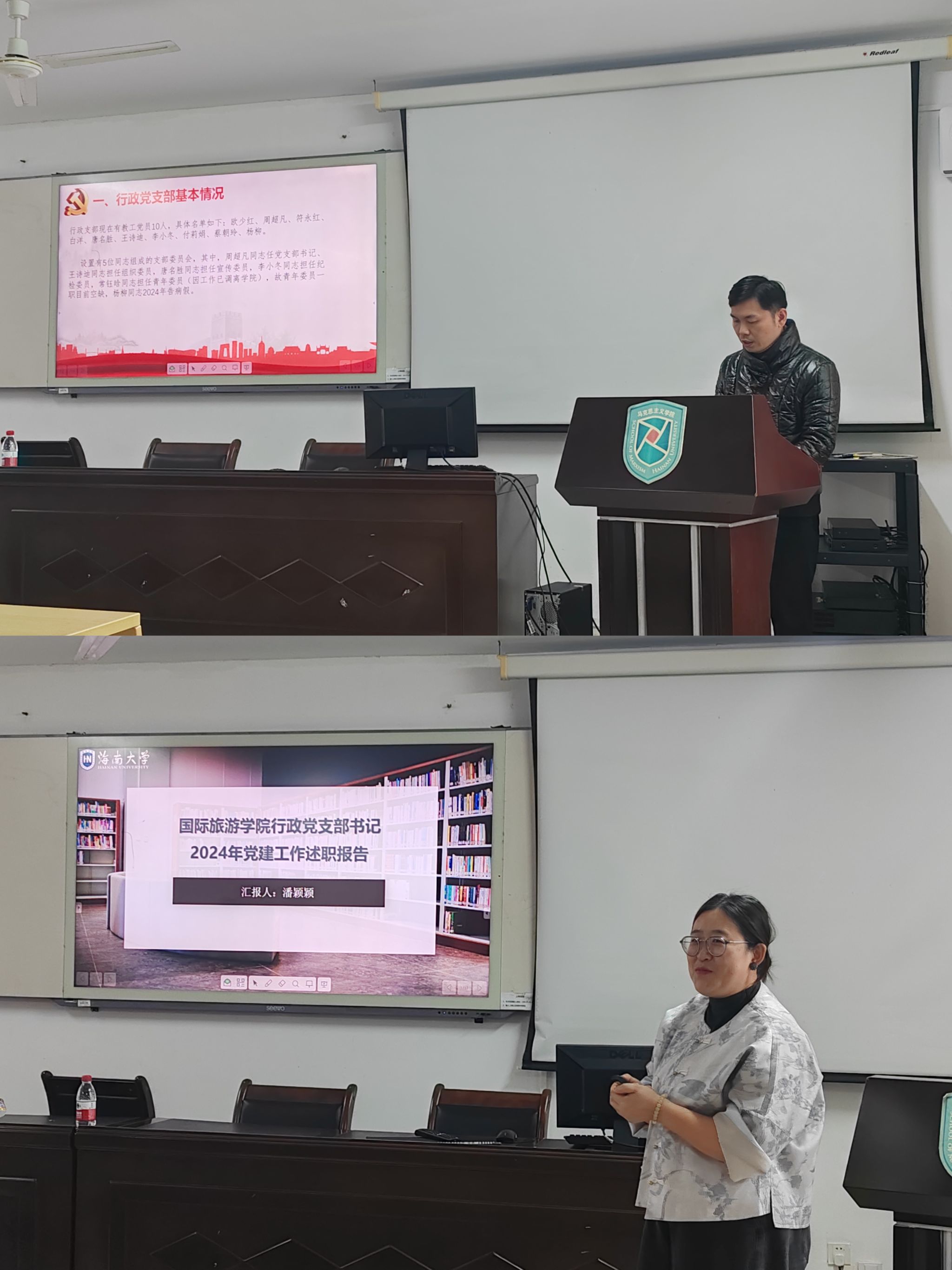 在听取述职报告后,郭强对各党支部过去一年的工作给予了充分肯定。他指出,各党支部在推动公司中心工作、凝聚师生力量、促进公司高质量发展等方面发挥了重要作用,积极推动党员教师将党的教育方针贯彻到教学科研工作中,持续为公司各项事业的蓬勃发展提供坚强的组织支撑。同时也对下一年工作提出了具体要求。他强调,一要强化政治引领,持续深化理论武装,要把学习贯彻党的二十届三中全会精神和习近平总书记在听取海南省委和省政府工作汇报时的重要讲话精神有机结合起来,以服务国家、服务海南、服务公司“三大改革”为目标,把组织力量、组织优势有效转化为发展动力、发展优势。二要夯实党建基础,严格落实“三会一课”制度,加强党员教育管理,提升党员队伍素质,关心青年教师成长发展,把更多优秀青年教师吸收到党的队伍中来。三要推动党建与业务深度融合,突出国际化、创新性、跨学科办学特色,将党建工作贯穿于教学科研、人才培养等中心工作的全过程,实现两者相互促进、协同发展。