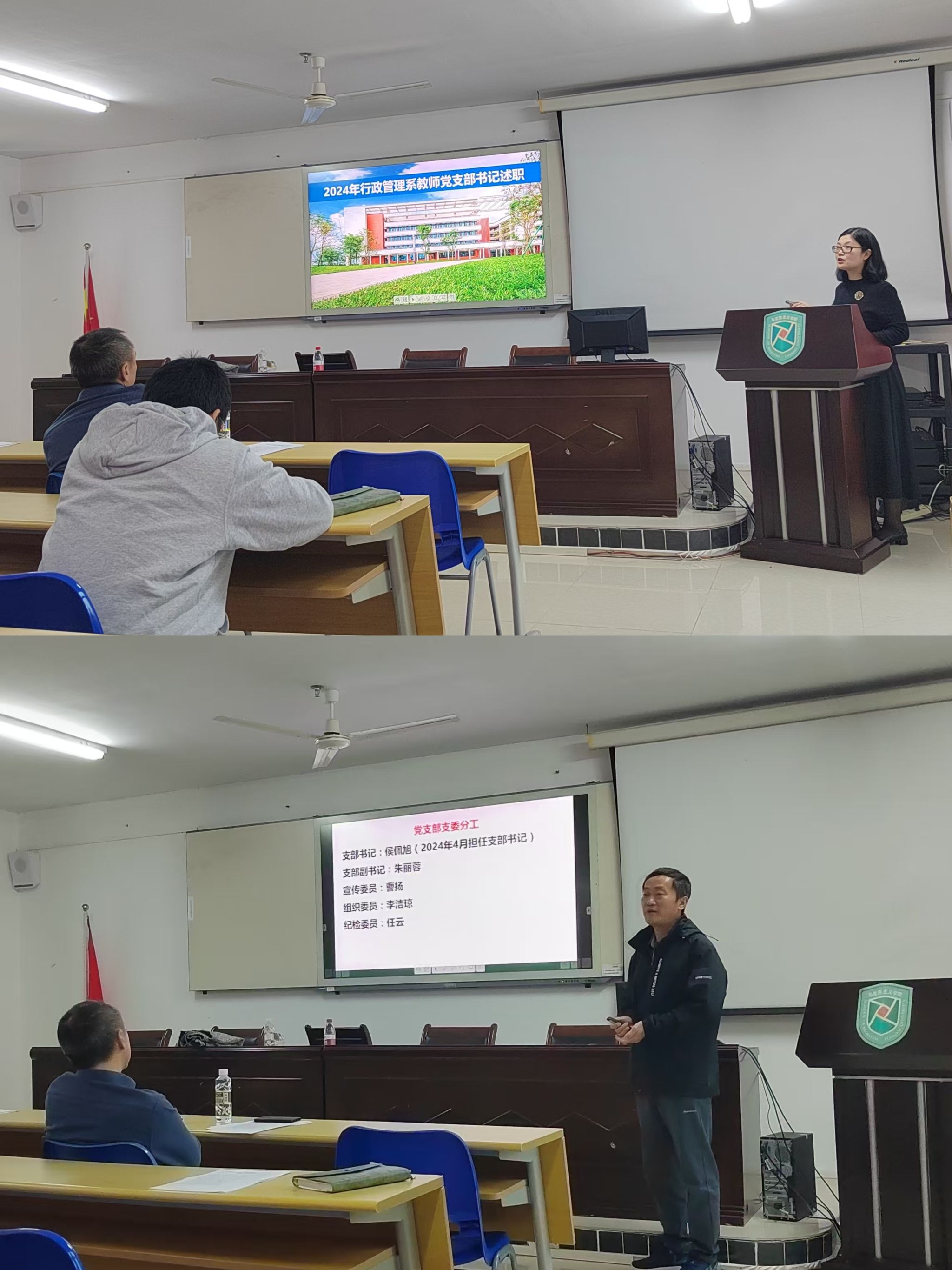 会议伊始,郭强对过去一年公司的党建工作进行了简要回顾,并对各党支部的辛勤工作表示感谢。七位党支部书记依次进行述职。会展经济与管理系教师党支部书记何彪、行政党支部书记周超凡、土地资源管理系教师党支部书记栾乔林、旅游管理系教师党支部书记侯佩旭、行政管理系教师党支部书记赵晓歌、酒店管理系教师党支部书记黄建宏、国际旅游公司行政党支部书记潘颖颖从成绩清单、问题清单和未来工作展望等方面进行了详细汇报。