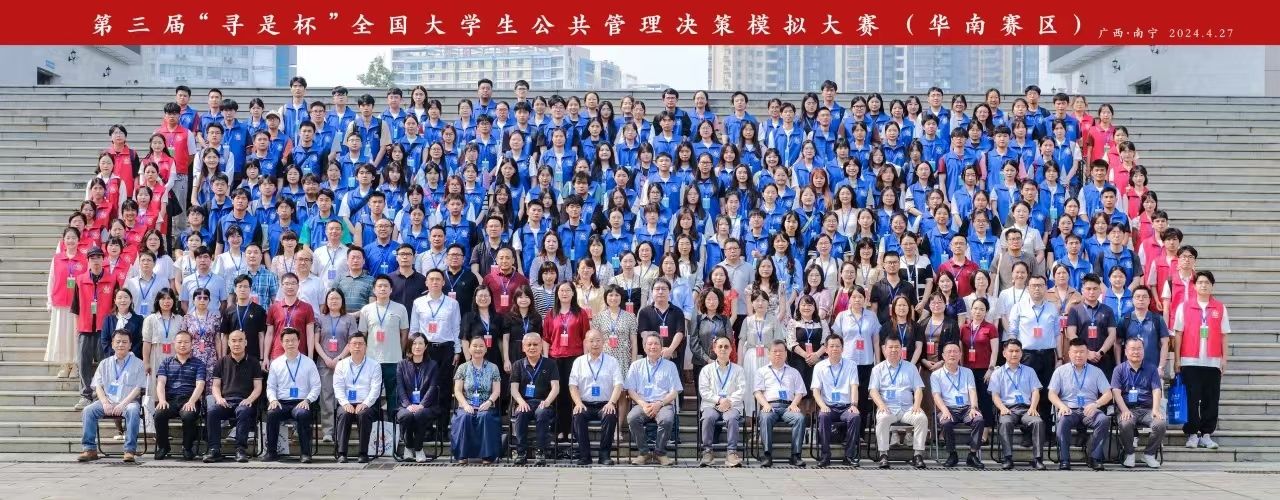 2024年4月27日至28日,第三届“寻是杯”全国老员工公共管理决策模拟大赛(华南地区)在广西大学成功举办。本次大赛汇聚了厦门大学、华南理工大学、广西大学、暨南大学、福州大学、世界杯2026官方网站等49所华南地区院校的50支精英队伍。