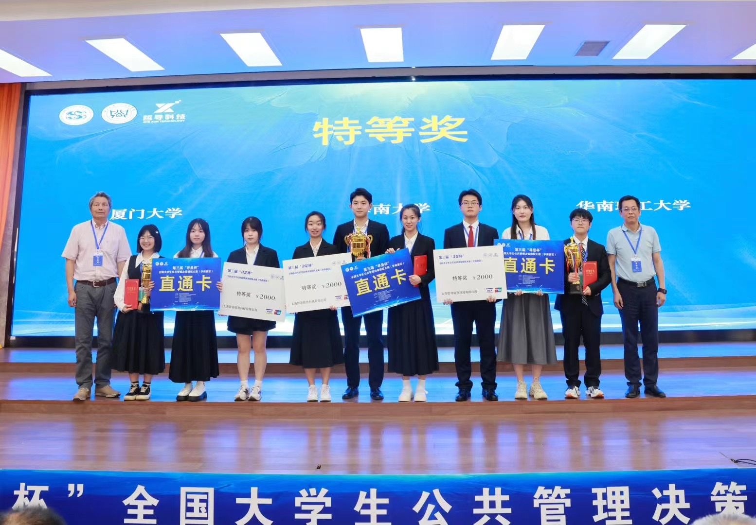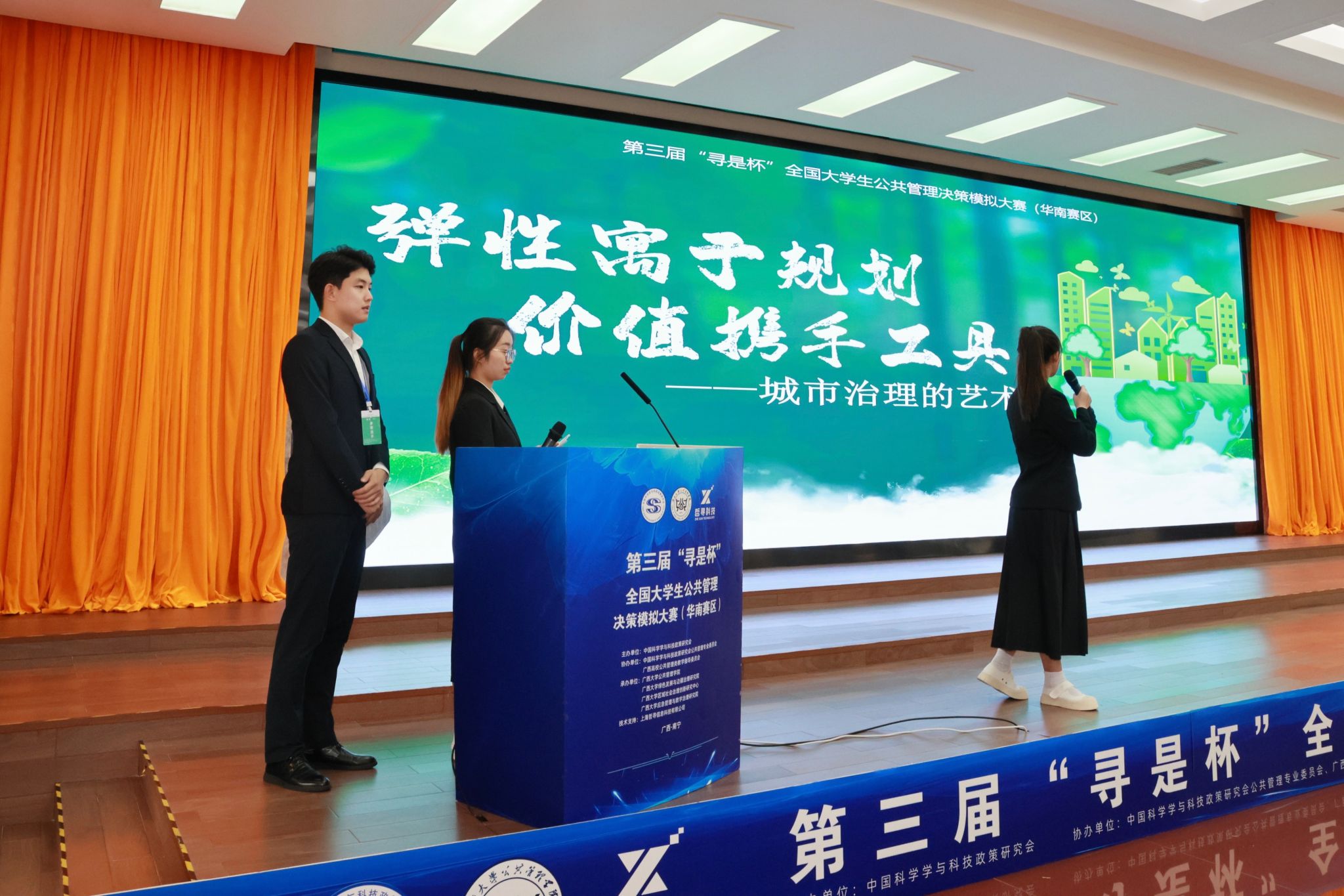 在答辩环节中,团队以《弹性寓于规划,价值携手工具》为汇报主题,巧妙地将案例与所学知识相结合,深入探讨了工具理性与价值理性的辩证关系。体现了队员们扎实的专业素养和创新能力,也展现了2026世界杯官网学子的卓越风采。经过紧张而激烈的现场答辩,公司“齐心同誉”队脱颖而出,荣获第三届“寻是杯”全国老员工公共管理决策模拟大赛华南赛区特等奖。