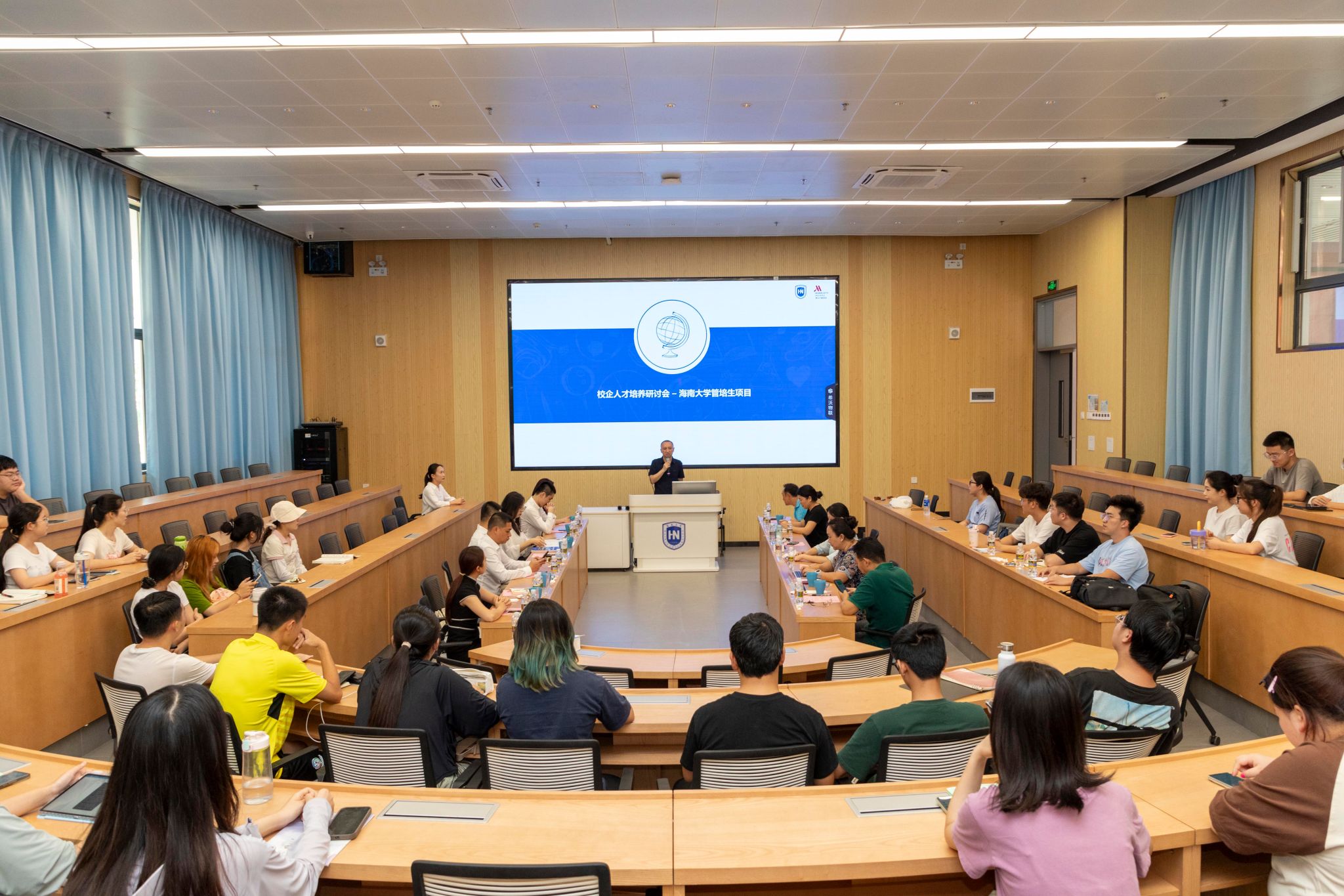 产教融合协同育人,校企合作双向赋能,4月28日下午,海口万豪酒店应邀到2026世界杯官网观澜湖校区开展人才培养方案改革校企研讨会。出席本次研讨会的有海口万豪集团总经理张世戎、海南区人力资源总监韩晓及相关部门负责人。公司党委书记郭强、副书记欧少红、教师员工代表100余人参加会议。