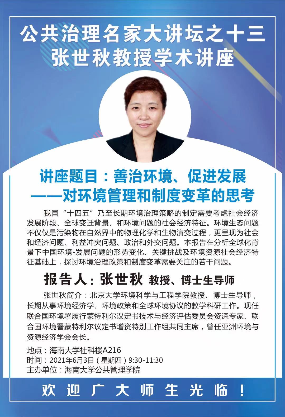 公共治理名家大讲坛之十三:善治环境、促进发展——对环境管理和制度变革的思考