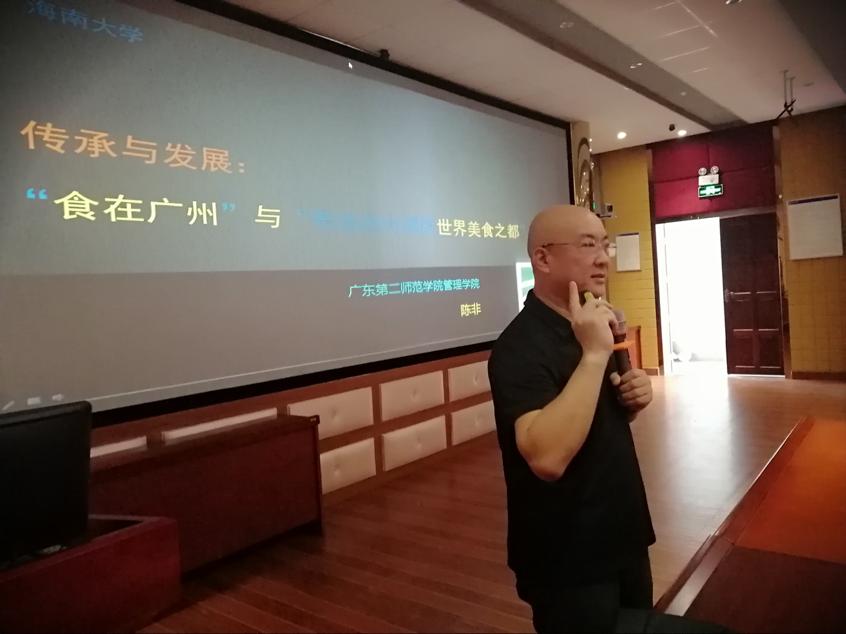 当天下午,陈非副教授围绕“食在广州”主题与世界杯2026官方网站旅游公司的同学进行分享,从餐饮行业本身畅游到粤菜与广州餐饮业的现状和成就。不仅如此,陈副教授以其对广州餐饮业的深入研究,对现有广州餐饮业战略进行定位剖析,对粤港澳“美食之都”给予高度肯定与期望,并领带大家展望海南省美食与旅游业结合的未来趋势。短暂的一个半小时后,“食在广州”与粤港澳美食之都讲座以谢老师的精炼的总结结尾,同学们纷纷起立热情鼓掌。