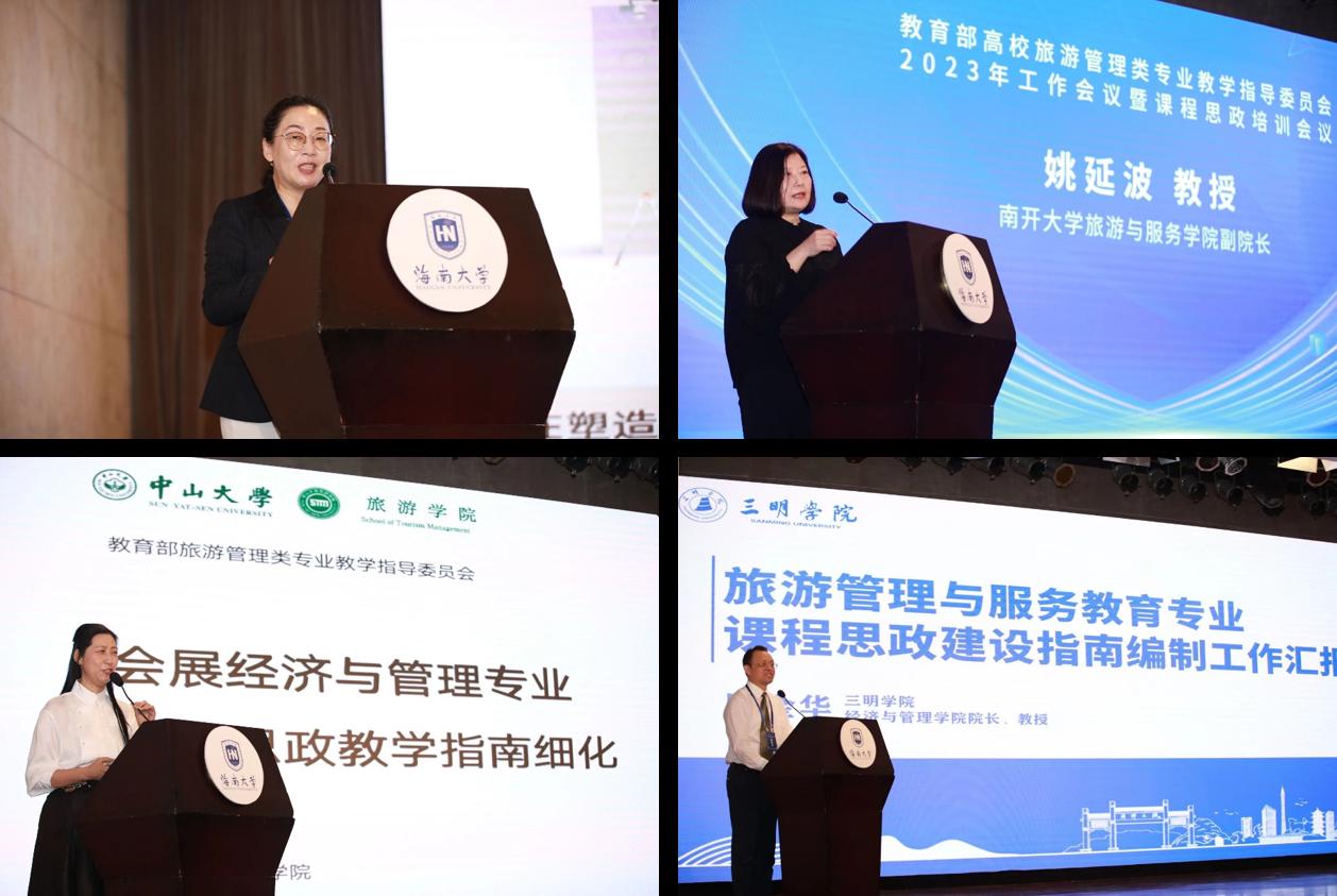 4月2日上午,高等教育出版社姚建婷作《高等公司旅游管理类专业课程资源建设》主旨分享。同时,分别由上海商公司姜红、南开大学姚延波、中山大学罗秋菊、三明公司罗金华进行主旨发言。专家们分别汇报了旅游管理、酒店管理、会展经济与管理、旅游管理与服务教育四个专业课程思政建设指南编制工作。