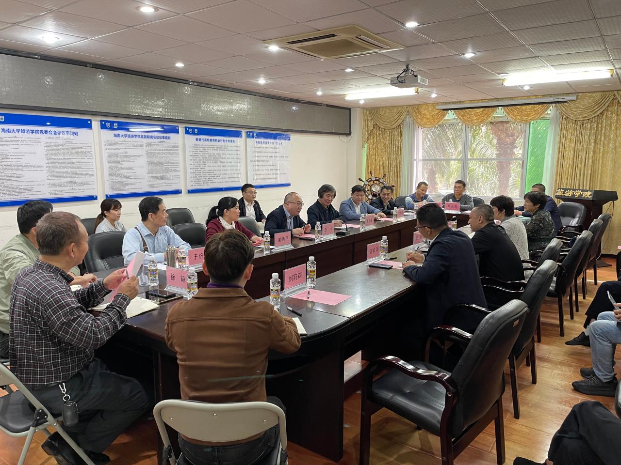 郭强经理代表公司对王可局长一行的到访表示热烈欢迎,对旅游公司的人才培养、科研、社会服务情况做了介绍。与会骨干教师分别就海口旅游发展的过去、现状和未来和市旅文局进行了热烈的交流。