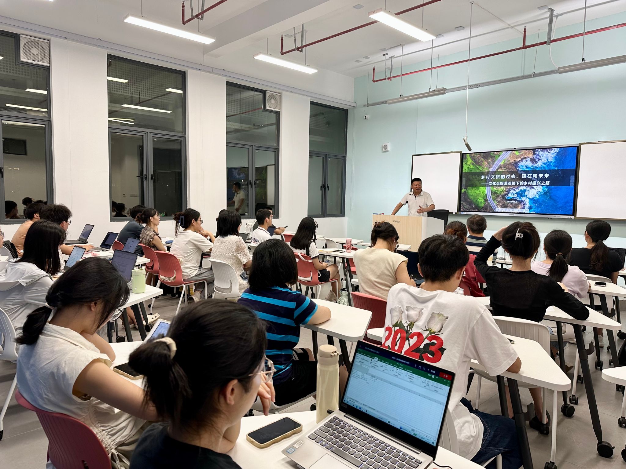 鬲永奇先生为同学们上了第一课《乡村文旅的过去、现在和未来——文化&旅游引领下的乡村振兴之路》。他的讲课内容丰富,涵盖了乡村振兴战略、城乡数据情况、乡村产业情况、乡村发展历程、乡村产品供给、国内外乡村项目与模式、国内乡村文旅现状与未来发展、乡村文旅发展趋势及其解析、国外乡村文旅发展借鉴和启示等;授课形式多样,结合图文、图表、视频等采用对比分析、典型案例等方式分享知识、交流思想,还专门安排了互动交流环节,受到了同学们的一致好评。据悉,鬲永奇教授将在冬季小学期讲授乡村旅游的过去、现在和未来,智慧旅游发展概述,旅游企业的转型发展等三个方面的内容,课程总计24学时。