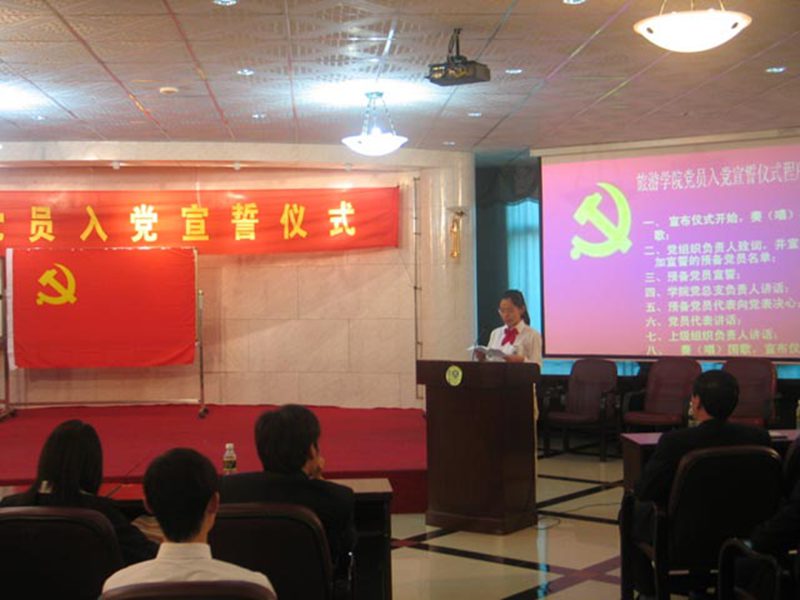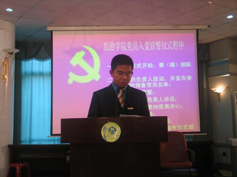 3月10日下午的旅游公司多功能厅座无虚席,旅游公司党总支在这里举行隆重的新党员入党宣誓暨党员重温入党誓词仪式。出席本次宣誓仪式的有公司党总支吕裕昌书记、公司党委组织部韩力光科长、公司党总支组织委员金晟同志、学工办的全体辅导员和教工、员工支部的全体党员、发展对象及部分入党积极分子。宣誓仪式由员工党支部组织委员林勇同志主持,金晟同志代表总支致辞并宣布参加宣誓的十名预备党员名单,吕裕昌书记代表总支讲话,员工党支部的谭洁、曹素娟分别作为党员代表和预备党员代表进行发言,最后由韩力光科长代表海大党委组织部进行总结发言并提出要求。入党宣誓仪式在热烈、隆重、庄严的气氛中进行,感染了每一位与会同志,同时也是一堂很好的党课教育课,更是为旅游公司党总支下步开展党员保持先进性教育活动写下了亮丽的一笔。