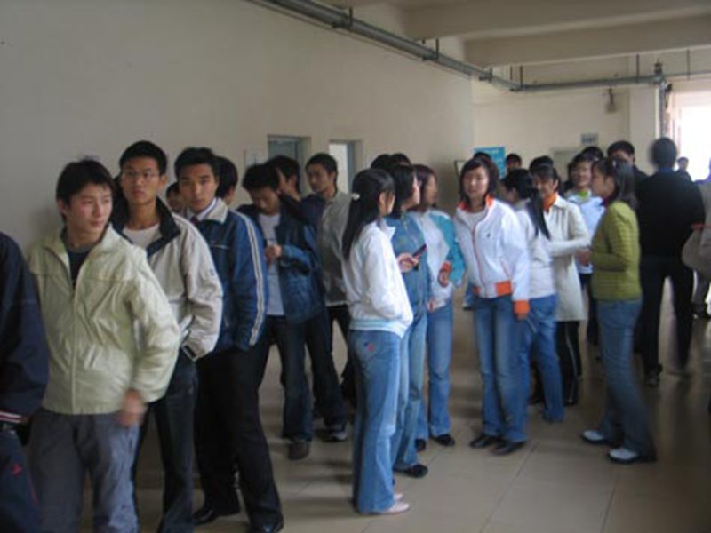 招聘会在旅游公司二号教学楼餐饮实验室举行,现场气氛十分热烈。参加招聘的同学超过数百名,以旅游公司员工居多,其中还不乏其他公司的同学。大家都表现十分踊跃。在招聘会上,各位应聘者都表现得泰然自若,无论是面谈中同学们流利的英语自我介绍还是游戏中同学们表现出来的团队精神,尽显海大学子的风采。招聘方对此十分满意,并增加了招聘名额。