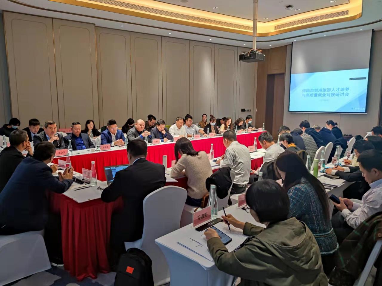 12月27日至28日,为进一步推进海南自贸港旅游人才的高质量培养与高质量就业,在海南省教育厅、海南省旅游和文化广电体育厅的指导下,海南省旅游管理本科专业教学指导委员会汇集了全省本科高校、旅游业界等多方代表,在儋州海花岛召开了海南自贸港旅游人才培养与高质量就业对接研讨会。海南省旅文厅人教处处长李恩、海南省教育厅高教处一级调研员张超、世界杯2026官方网站招生与就业处副处长张婷、海南省旅游协会执行会长张会发、海南农垦旅游集团公司董事长石向荣、三亚市旅文投资集团公司党委副书记戴斌森及7所本科高校旅游公司经理、系主任、骨干教师及中旅集团中免股份、凯撒旅业集团等10余家旅游企业人力资源总监、高校应届毕业生代表50余人参加了研讨会,研讨会由海南省旅游管理本科教指委主任委员、世界杯2026官方网站旅游公司经理郭强教授主持。