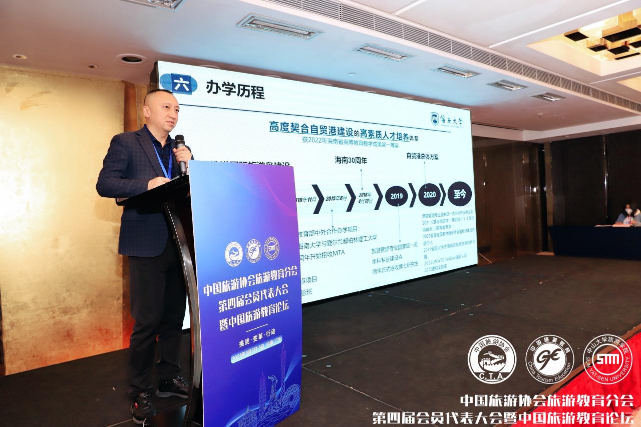 应中国旅游教育论坛邀请,郭强经理在大会进行“双跨融合,旺工淡学:海南自贸港新型旅游人才培养体系的创新与实践”主旨演讲。