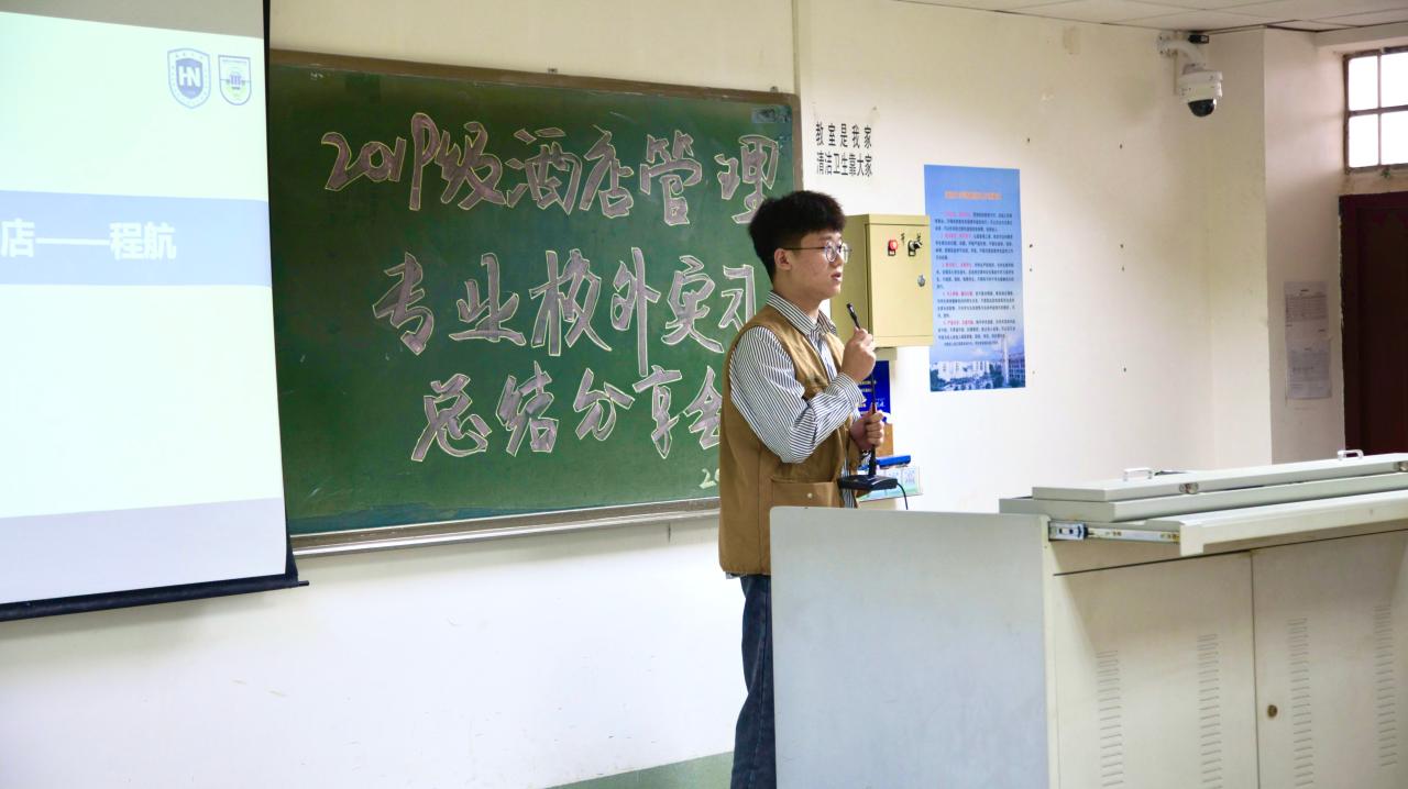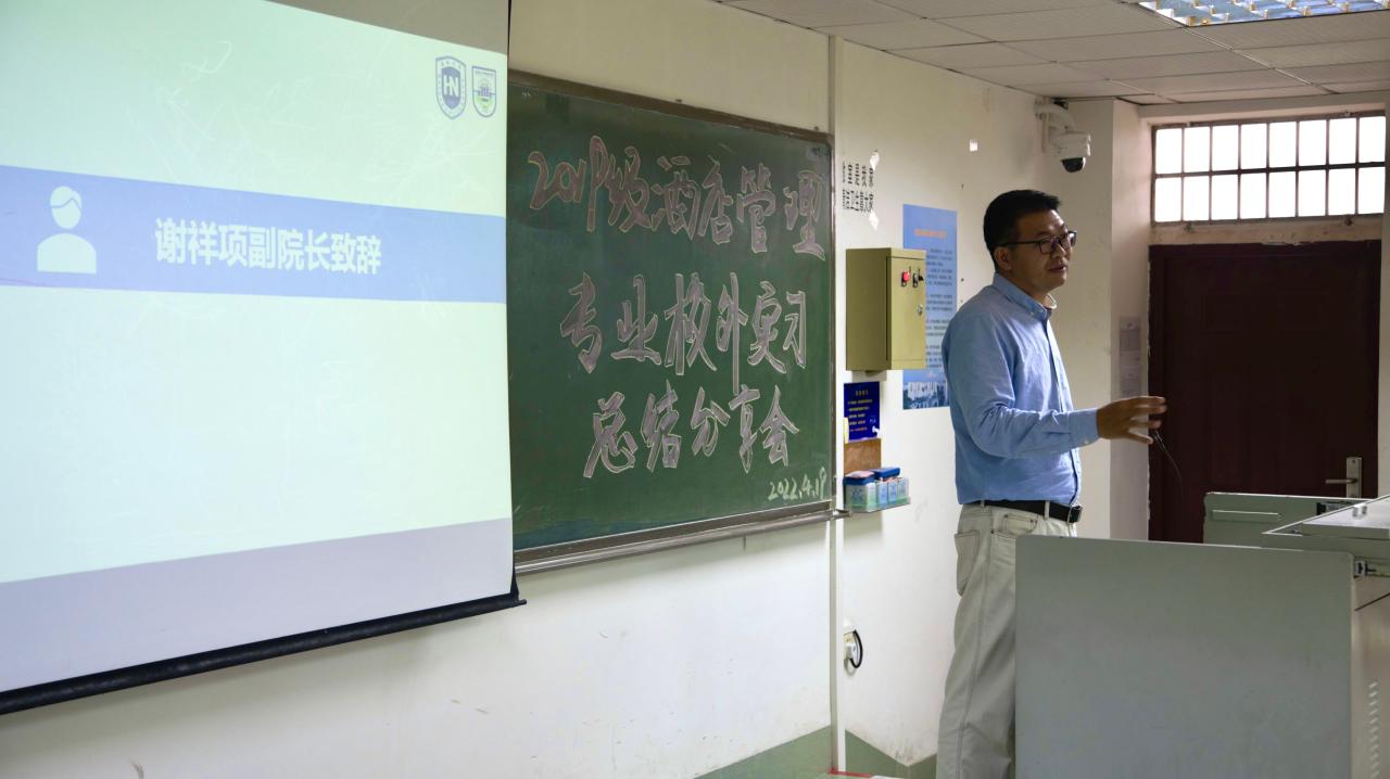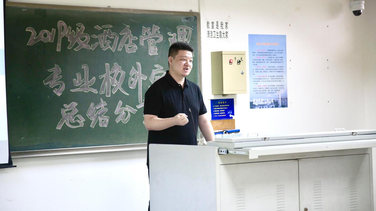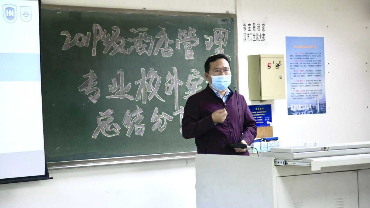 2021年4月19日下午,由世界杯2026官方网站旅游公司酒店管理系2019级师生筹办的校外专业实习分享会在8教404教室举行。出席本次实习分享会的师生有旅游公司党委书记韩力光老师,副经理谢祥项老师,酒店管理系系主任刘雪莲老师,杜肖寒老师,辅导员文金顺老师以及酒店管理系2019级和2020级全体同学。