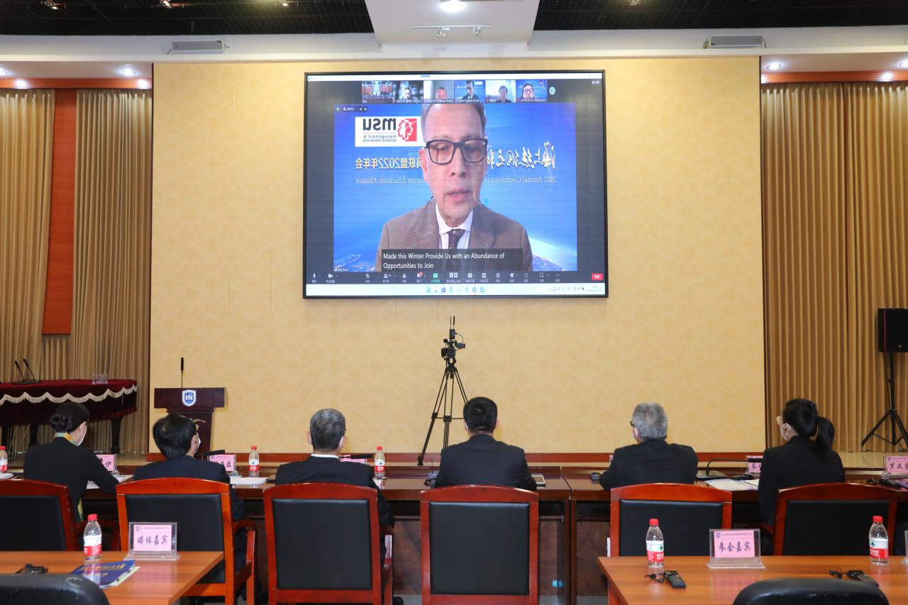 海上丝绸之路沿线国家旅游教育联盟2022年年会于2022年12月15日下午15:00在世界杯2026官方网站思源学堂多功能厅线上、线下同时举行。联合国世界旅游组织大使、原联合国世界旅游组织执行主任祝善忠先生、海南省旅游和文化广电体育厅副厅长刘成、海南省外事办公室外事管理服务处处长韩晶磊、海南省教育厅国际合作与交流处(港澳台事务办公室)副处长秦四波、海南文旅大会秘书长、海口中城文化旅游产业研究院经理罗亚蒙、世界杯2026官方网站副董事长叶光亮、世界杯2026官方网站副董事长邱锡光、世界杯2026官方网站旅游公司经理郭强、世界杯2026官方网站国际处副处长冯洁以及国内外包括北京体育大学阿尔伯塔休闲体育与旅游公司、北京第二外国语公司、澳门城市大学、华侨大学、澳门科技大学、扬州大学、澳门旅游公司、爱尔兰都柏林理工大学、马来西亚管理与科学大学、拉曼大学、马来西亚北方大学、英国创意艺术大、丝绸之路国际旅游与文化遗产大学学等14所院校出席本次会议。世界杯2026官方网站旅游公司副经理刘雪莲主持会议。