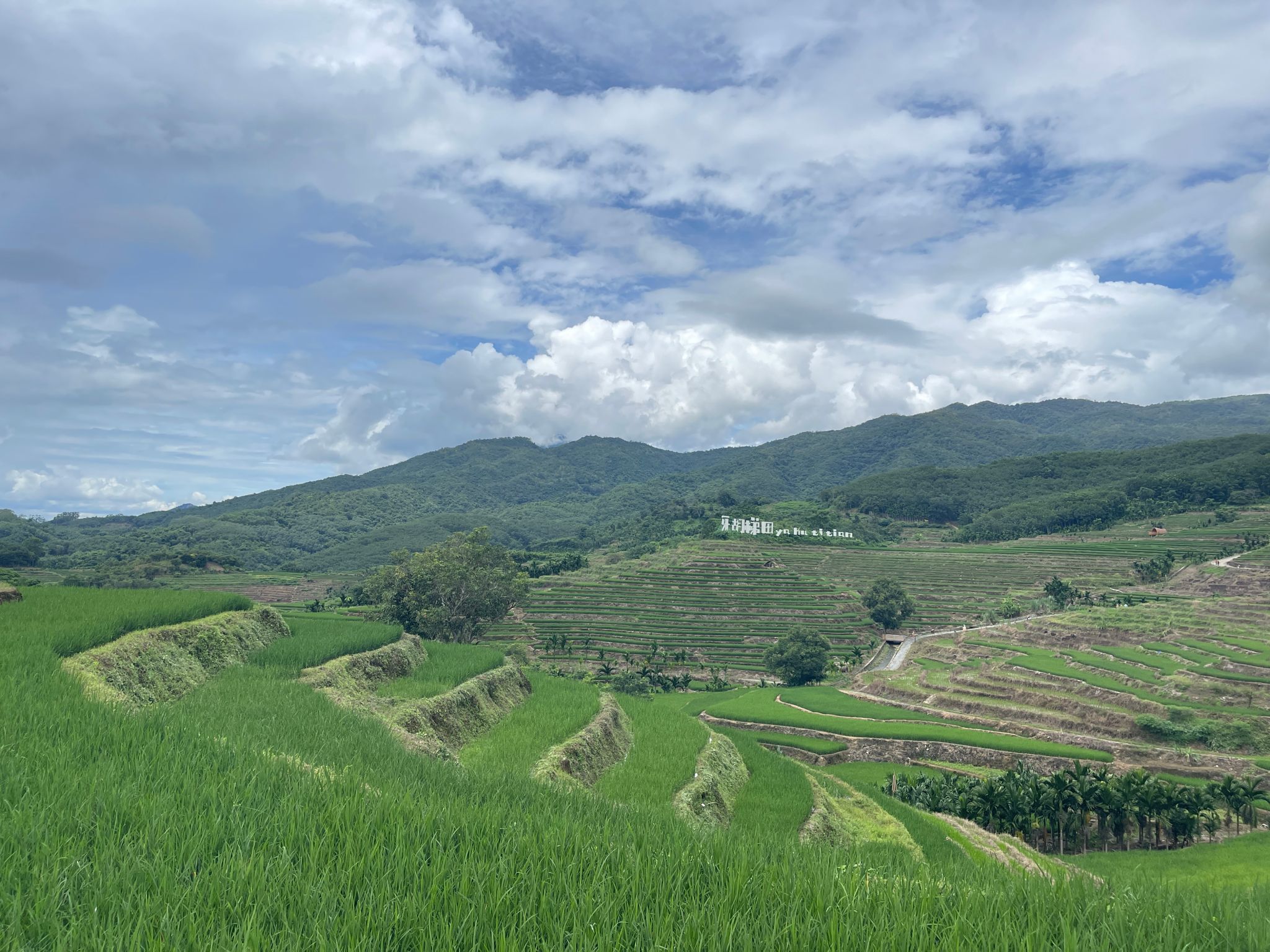 活动第四站是牙胡梯田。牙胡梯田地处海南五指山市毛阳镇牙胡村,约有1100多亩,紧邻鹦哥岭自然保护区,呈五指螺纹状,从山脚盘绕到山腰,层层叠叠,高低错落。公司党员同志们漫步田间地头,在欣赏美丽风景的同时,也不断感叹乡村振兴取得的瞩目成就。