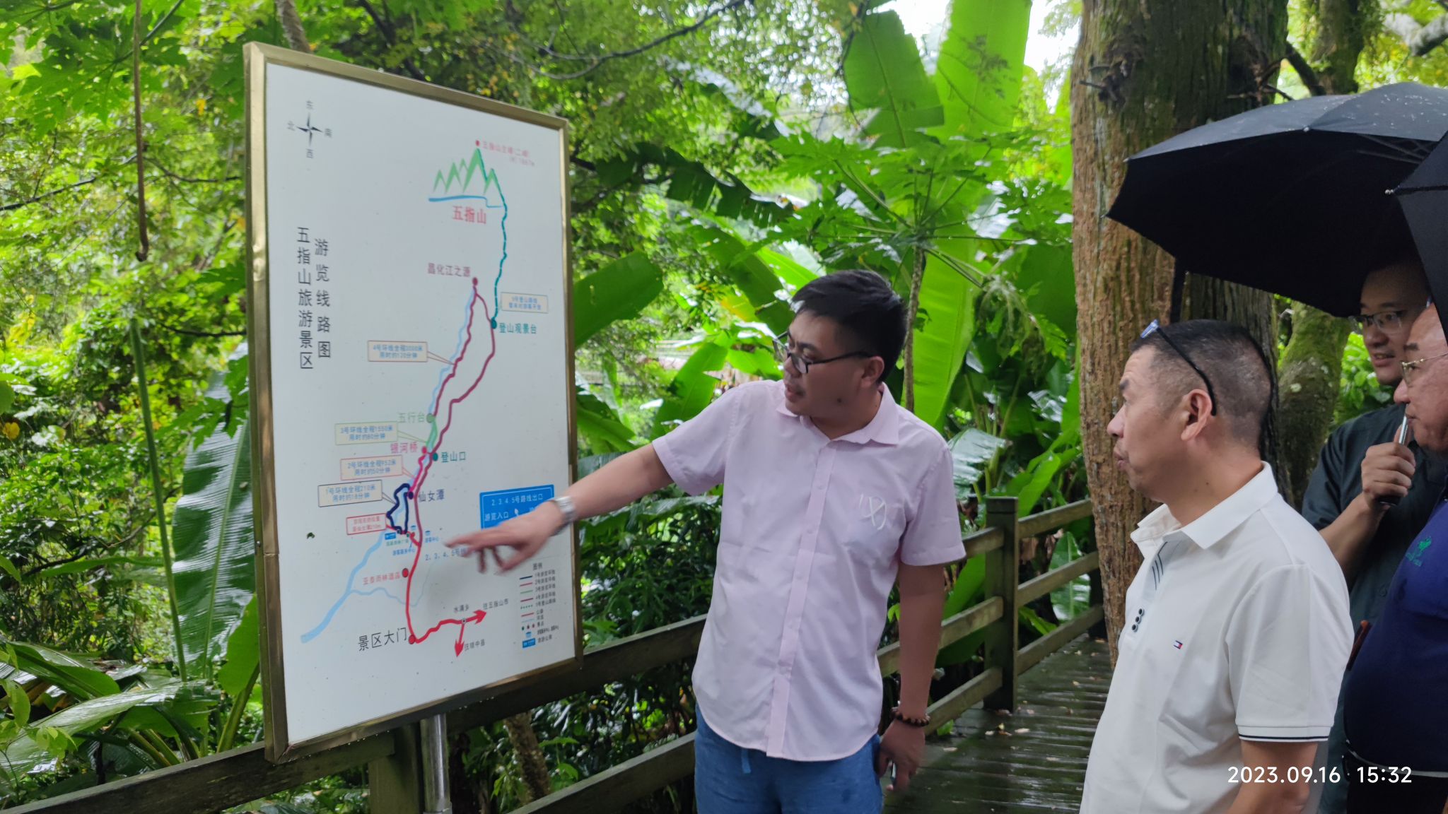 活动第二站是海南热带雨林国家公园五指山片区。海南热带雨林国家公园是我国首批5个国家公园之一。公司党员同志们冒着绵绵细雨,沿着湿滑的木栈道步行参观考察公园生态环境,不时停下脚步互相交流,对保护和发展热带雨林交流想法。