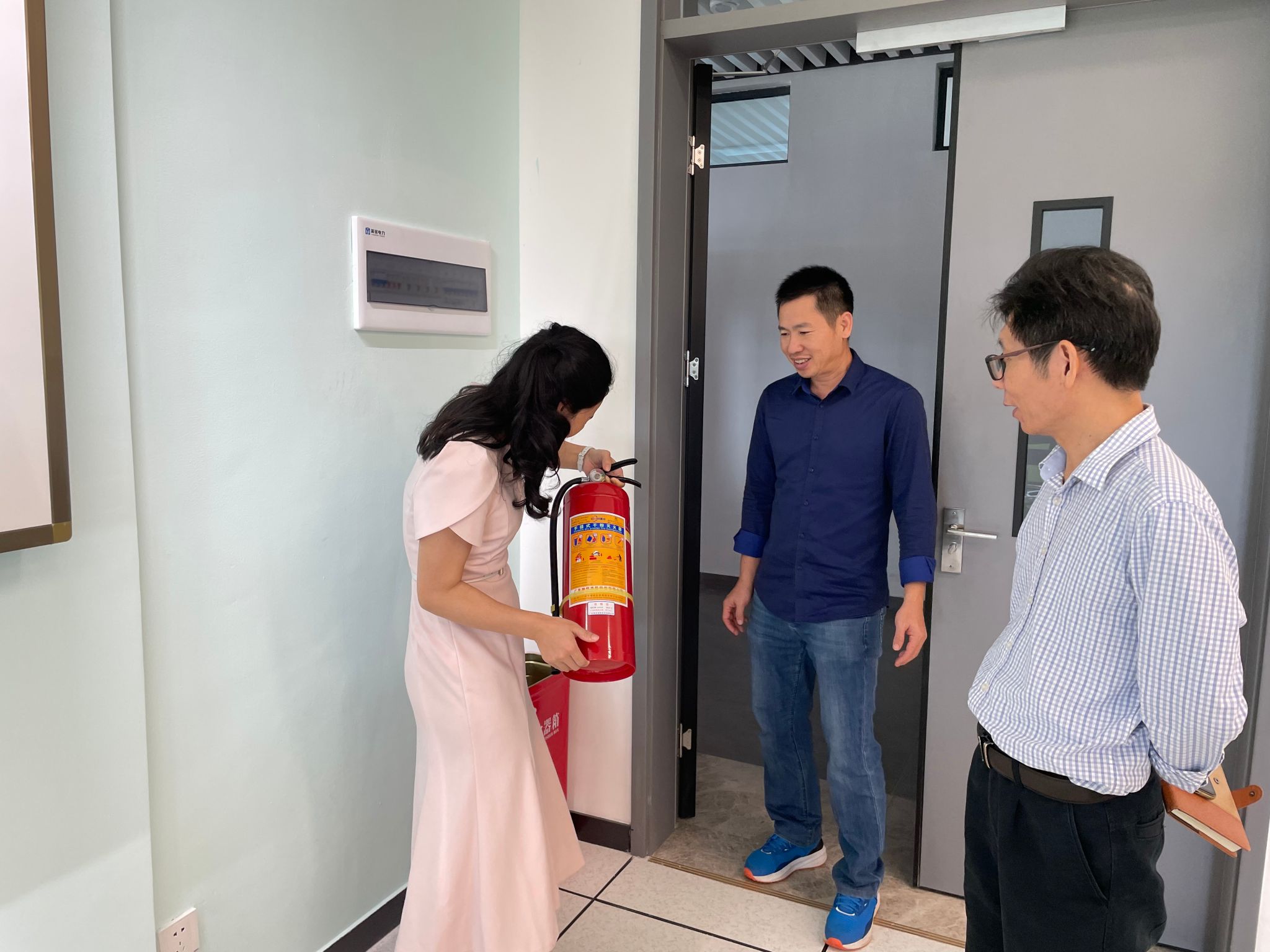 检查组结合公司实验室暑期搬迁至观澜湖校区的特点,重点检查了消防器材的完好有效性和文科类实验室的电路电器安全状况,同时加强对实验室人员的安全教育,并指导做好新搬迁实验室安全制度上墙工作。