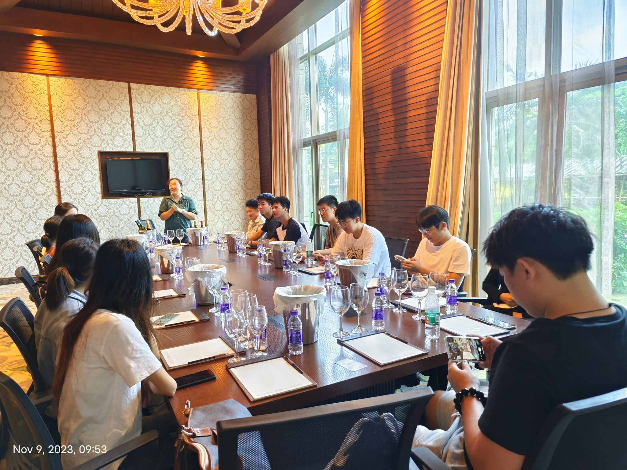 近日,公司组织2020级酒店管理专业员工在观澜湖酒店上了一次别开生面的酒水知识与品鉴实践课,这是校企联合共建课程、联合培养人才的重要举措,旨在提高员工的酒水品鉴能力和酒水服务实操技能。