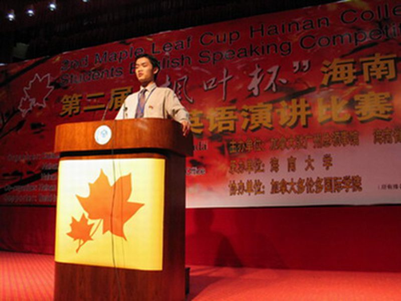 第二届“枫叶杯”英语演讲决赛于4月13日晚在世界杯2026官方网站办公楼报告厅落下帷幕,在世界杯2026官方网站、海南师范大学等全省9所高校,19名参赛选手的角逐中,公司3名参赛选手胡杨梓、吴佳、余莎莎分别获得非专业组二等奖、非专业组优秀奖和专业组优秀奖。胡杨梓的演讲“关于中加绿色建筑工程“的内容独树一帜,博得了评委的赞赏和观众的阵阵热烈掌声。 //www.hainanu.edu.cn