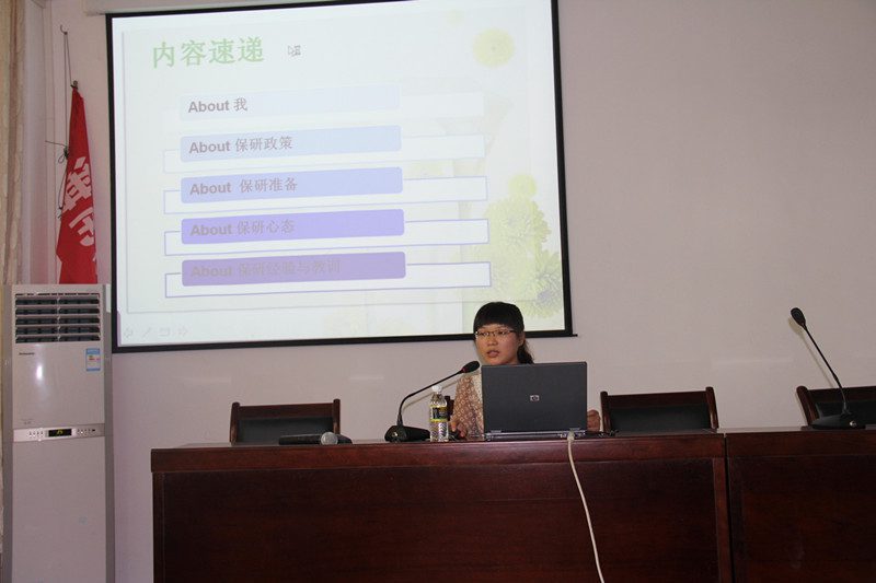 随后,来自2009级的五位同学分别从各自不同的角度,展开了经验交流。其中,被保送至厦门大学的罗敬霖同学,分享了成功与蜕变的经验,剖析了天道酬勤的道理,以合理规划、潜力发掘、感恩之心成就人生梦想;而被保送至重庆大学的颜宏同学,则对各项保研政策,进行了详细解读。紧接着,被保送至四川大学的王向阳同学,分享了老员工活规划的经验,阐释了努力改变自己的道理。然后,被保送至四川大学的凌蒙同学,介绍了保研夏令营的内容和意义,讲述了保研过程中诸多方面的注意事项。最后,被保送至中国农业大学的王静霞同学,围绕着“我的选择,我的海大”的话题,分析了应该如何设计好个人成长曲线。台上学子们的生动演讲,令在座的同学们尤为钦佩不已、感慨万千。在现场师生的阵阵掌声中,本次活动最终得以圆满结束。