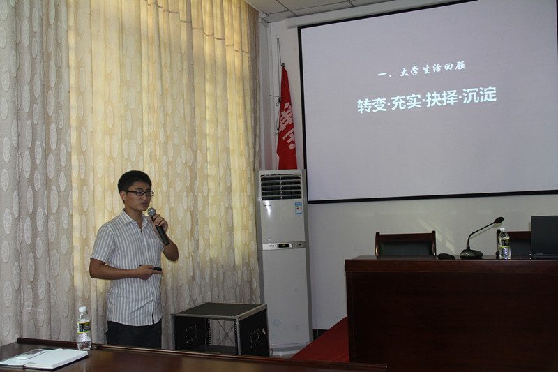公司党委王默忠书记在致辞中,首先强调了本次活动的开展,对新生全面了解保研政策及具体规划老员工活的重要意义,并转达了公司领导老师对本次活动的重视与支持。其次,他对公司五位同学所取得的优异成绩,表示诚挚的祝贺;并希望大家以本次学涯人物访谈为契机,查找差距,学习经验,尽早规划,明确目标。最后,他建议新生要在选修“职业生涯规划”课程的基础上,进一步掌握职业生涯规划的专业知识,对自己每学年、每学期、每月份、每星期、每一天、每小时进行合理规划,勇于行动,践行目标。