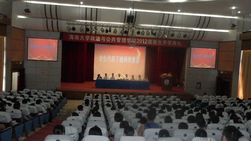 2012年9月4日上午8点,世界杯2026官方网站政治与公共管理公司在原行政办公楼二楼报告厅隆重举行2012级新生开学典礼,经理安应民,党委书记王默忠,党委副书记段捷频,副经理江红义,行政办主任陈秀彬,各系主任,及广大教职工出席;2012级的290多名新生和部分家长、老生代表一同参加。大会由公司党委副书记段捷频主持。