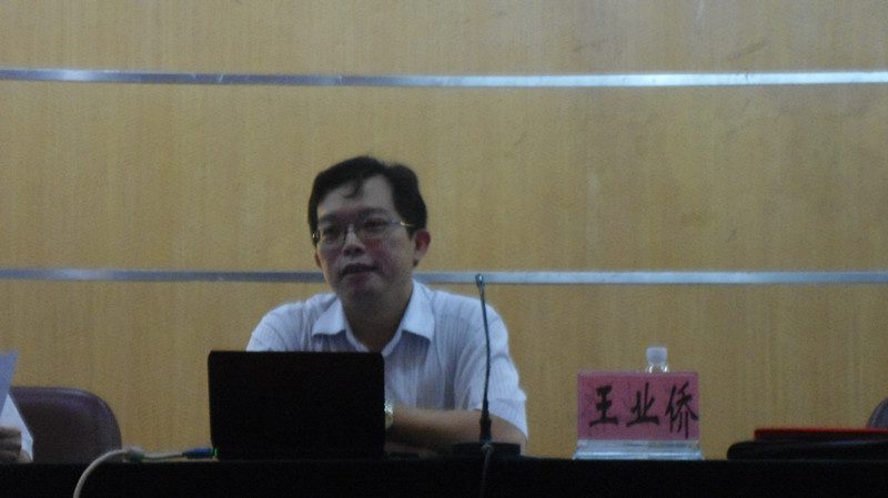 敬聘仪式结束后,王业侨博士为在场的全体师生做了题为《海南省土地利用管理形势分析与对策》的学术报告。王业侨博士从六个方面来阐释海南省土地利用管理形势分析与对策:第一,海南省土地资源利用状况;第二,“十一五”国土工作成效;第三,土地资源利用存在的主要问题;第四,海南省土地利用所面临的形势;第五,加强和规划管理的对策;第六,对国土部138号文件解读,海南省各土地利用比率。王业侨博士用缜密的思维、渊博的学识、风趣的语言,使得在场每个人都格外专心地聆听本次报告会。随后,王业侨博士还与现场所有的师生们进行深入地交流与互动。最后,由安应民经理对本次报告会做最后的总结。