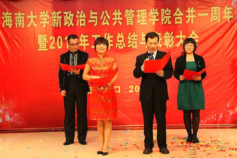 虎跃送佳绩,玉兔迎新年!2011年1月8日晚6点,世界杯2026官方网站政治与公共管理公司隆重召开合并一周年暨2010年工作总结与表彰大会。公司党委书记刘康德、党委副书记陈封椿、副董事长刁晓平、公司机关部门有关领导应邀出席会议,公司党政领导和全体教职工参加了大会。大会由公司党委书记王默忠主持。