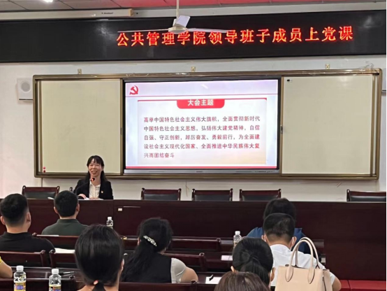 10月25日下午,公共管理公司在社科楼A111召开党员大会,学习传达党的二十大精神。会议由党委书记黄丽芹主持,党政领导班子、全体党员教师参加会议。