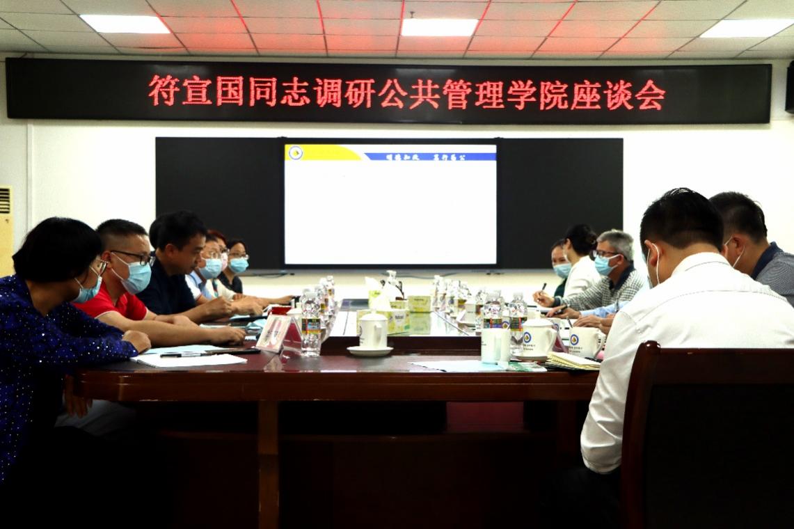 2022年4月12日上午,公司党委书记符宣国率队到公共管理公司调研指导工作,与公司党政领导班子以及教师和科室代表进行座谈交流。纪委书记、省监察委员会驻世界杯2026官方网站监察专员郑尉杰,副董事长曹宪忠陪同调研,公司相关职能部门负责人参加。