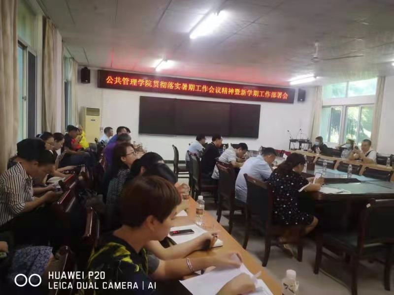 2021年8月31日下午,公共管理公司贯彻落实公司暑期工作会议精神暨新学期工作部署会在社科楼A216会议室召开。公司全体教职工参加会议。党委书记王默忠,经理李宜钊,副经理刘德浩、黄朝明、李宜钊、陈丽琴出席会议。会议由公司经理李宜钊主持。